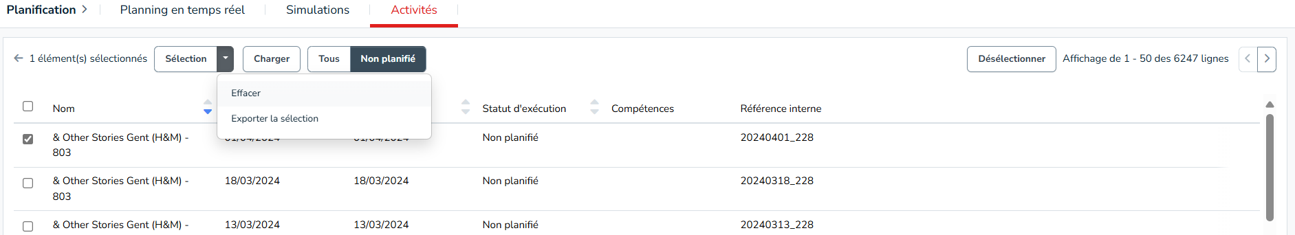 Passez la souris sur l’activité que vous souhaitez supprimer et cliquez sur l’icône "poubelle".