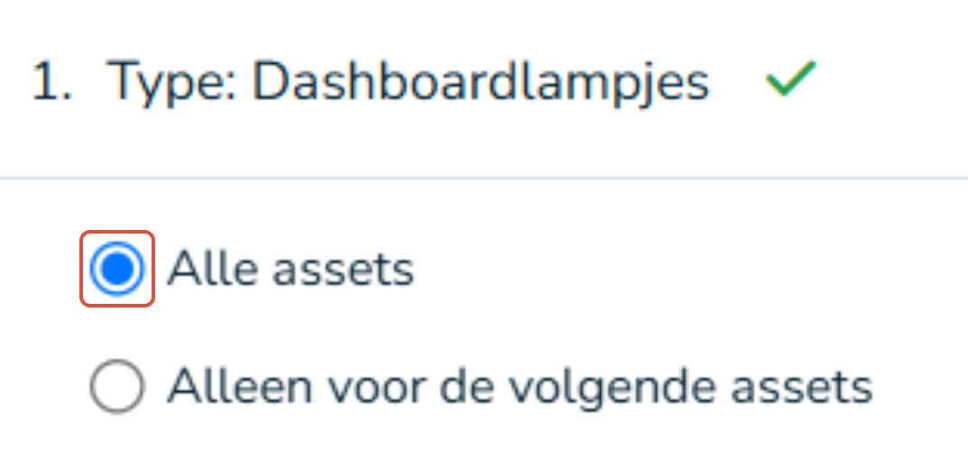 Soort lampje: Selecteer één specifiek dashboardlampje of alle uit de drop down lijst