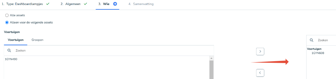 In een volgende stap kan je aangeven voor welke voertuigen je dit wenst in te stellen.