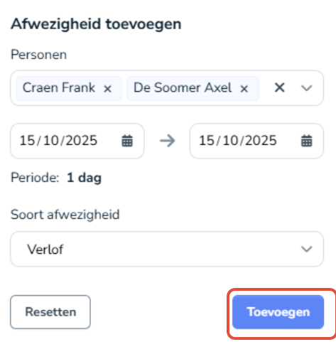 - Via de knop "Toevoegen" voor één of meerdere personen
