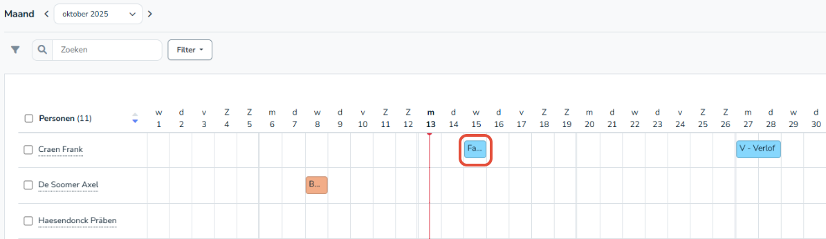 In de kalender wordt nu het familiaal verlof getoond ipv verlof.